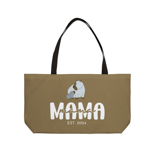 Personalized Mama Capybara Weekender Tote Khaki, Gift For Mom