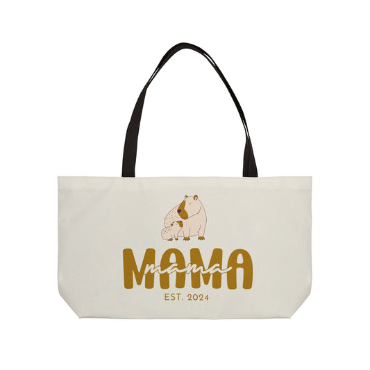 Personalized Mama Capybara Weekender Tote Beige, Gift For Mom