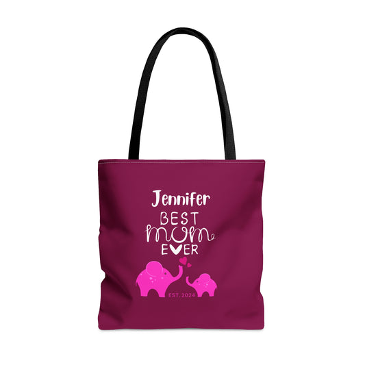 Personalized Best Mom Ever Tote Bag Gift for Mom, Baby Elephants Pink Tote