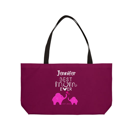 Personalized Best Mom Ever Weekender Bag for Mom, Pink Baby Elephants Tote Bag