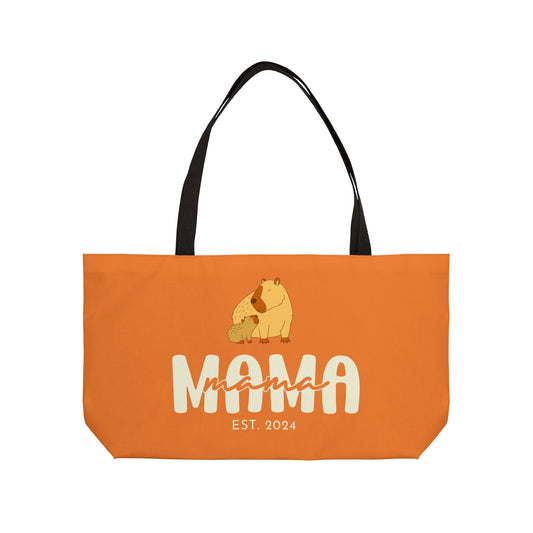 Personalized Mama Capybara Weekender Tote Orange, Gift For Mom
