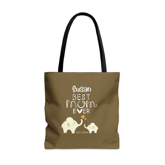 Personalized Best Mom Ever Tote Bag Gift for Mom, Baby Elephants Khaki Tote