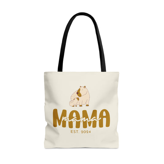 Custom Mama Capybara Tote Bag Beige, Gift for Mom Custom Tote Bag