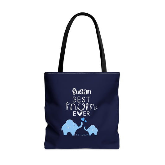 Personalized Best Mom Ever Tote Bag Gift for Mom, Baby Elephants Blue Tote