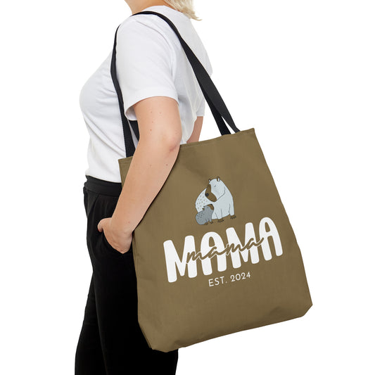 Custom Mama Capybara Tote Bag Khaki, Gift for Mom Custom Tote Bag