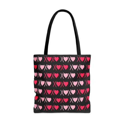 XOXO Pink Hearts Pattern Black Tote Bag - Valentine's Gift