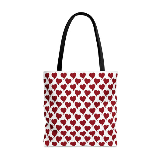 Red Hearts Pattern Hand Tote Bag, Valentine's Day Gift