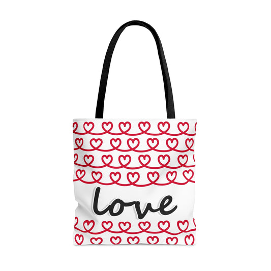 Love Red Hearts Hand Tote Bag - Valentine's Day Tote Bag Gift